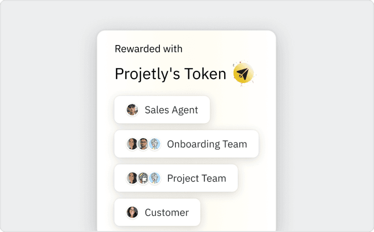 Boost engagement and motivation across the deal Projetly rewards your sales reps, onboarding teams, and even customers with on-chain crypto tokens based on deal progress.