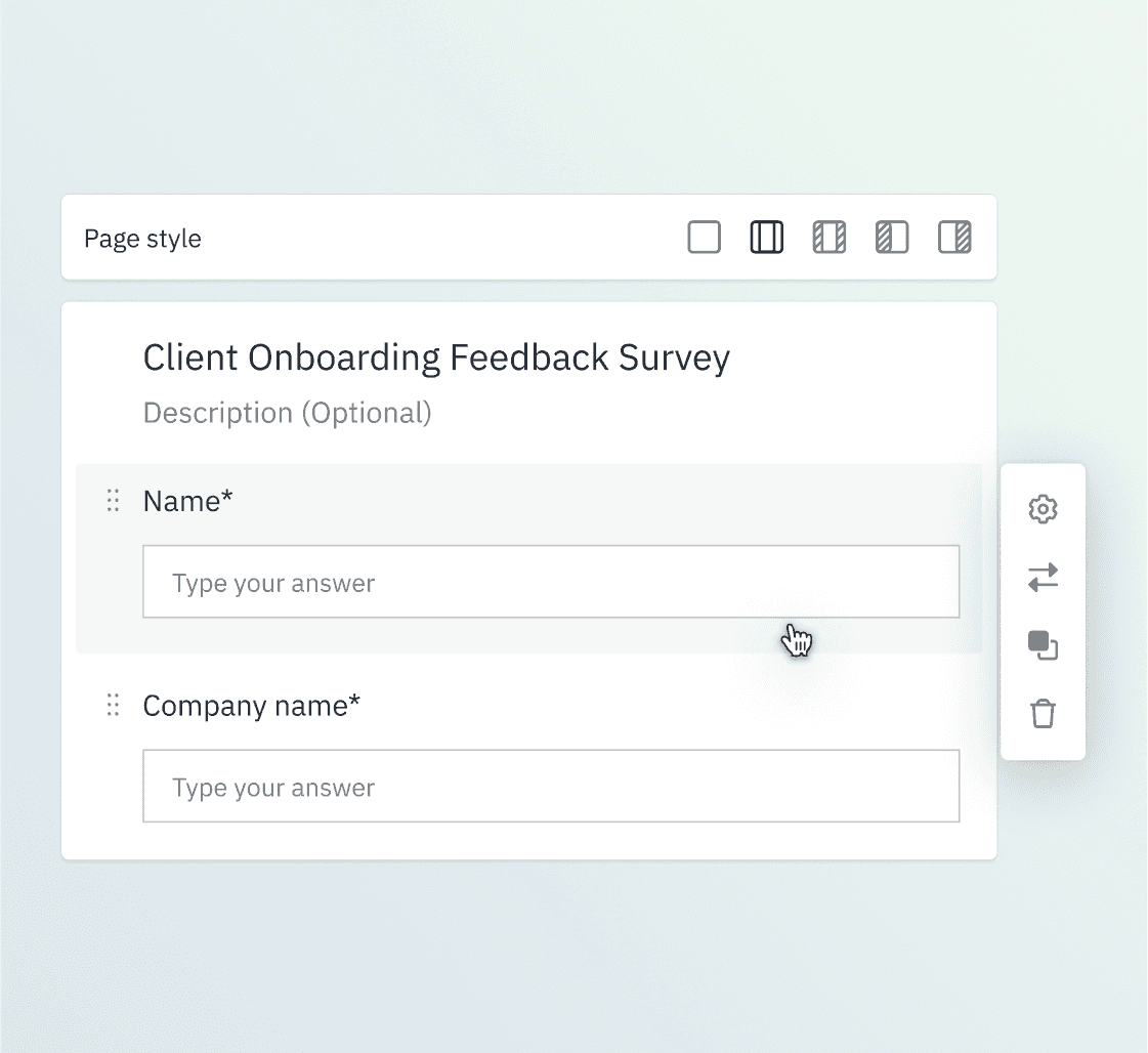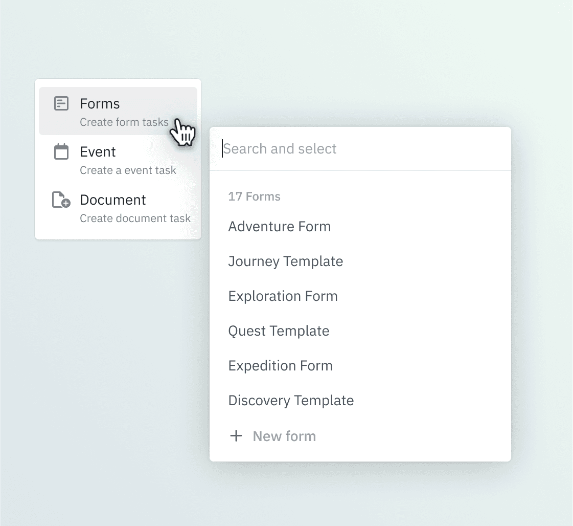 Create reusable Forms and Surveys across sales, onboarding, and delivery workflows