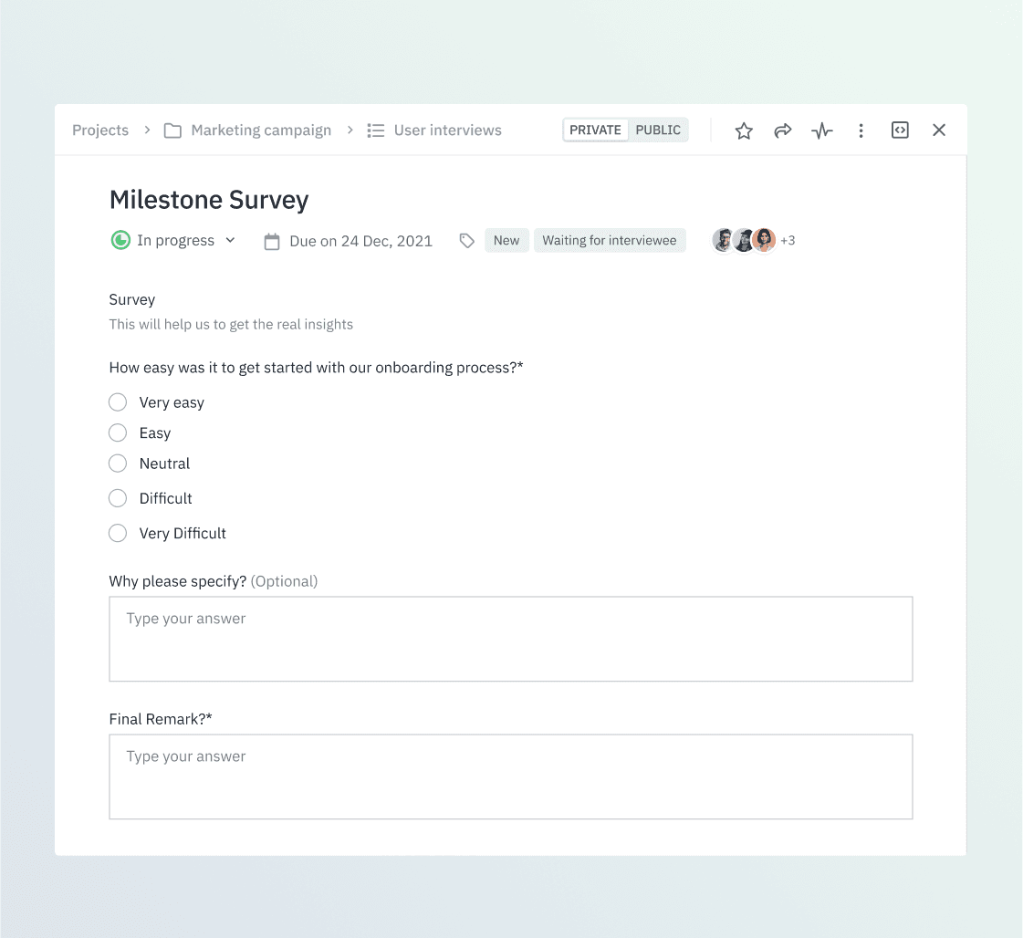 Collect structured inputs seamlessly within active projects and tasks